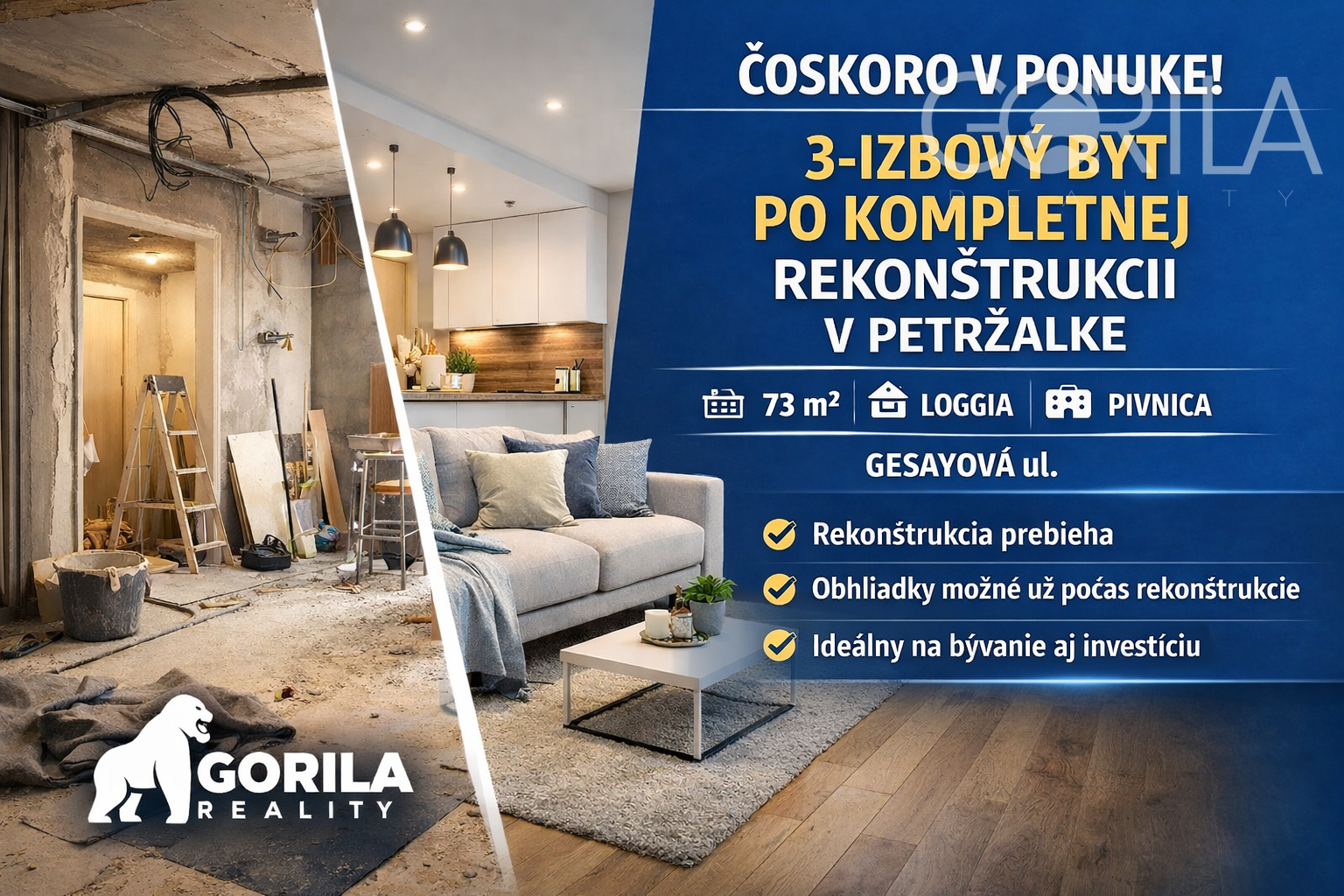 Už čoskoro v ponuke – kompletne zrekonštruovaný 3-izbový byt v Petržalke!
